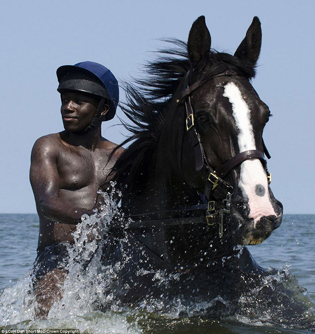 水马,摄影师:皇家骑兵团,一等骑兵Dan Short,该作品获得了运动与竞技业余组的冠军。休息时间,皇家骑士团的一名学员正在水中骑马。