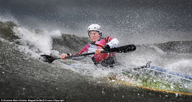 划桨的力量,摄影师:Graeme Main,该作品获得了运动与竞技专业组的冠军。圣大卫湾,布劳迪附近,陆军少校Chis Elesmore正在海面上奋力地划独木舟。这是摄影师于2013年7月在澳大利亚昆士兰举行的世界冲浪独木舟协会锦标赛上拍摄到的照片。
