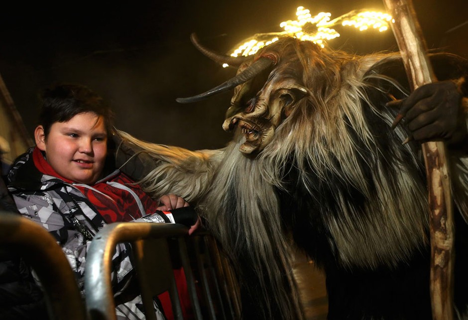 “Krampus”是巴伐利亚地区和阿尔卑斯山其他一些地区的传统活动,每年12月前后举行。Krampus是圣诞老人的原型——圣人尼古拉斯的助手,在当地的传说中,他肩背一个装着礼物的大袋子,手拿一根棍子,好孩子可以收到他的礼物,顽皮的孩子则会被棍子敲打?!癒rampus”的造型有些让人吐槽,看起来如同“恶魔”一样凶残,其实面冷心热??纯此氖芑队潭?,你就知道他的人气有多旺。
