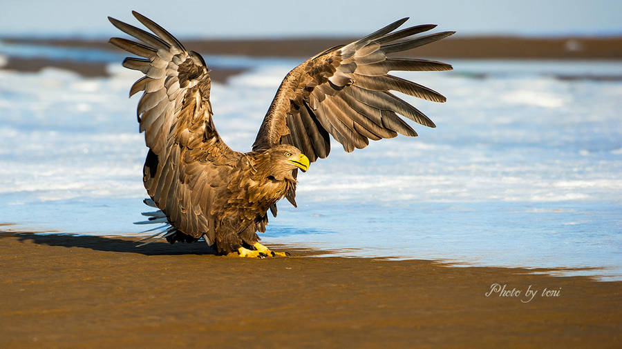 白尾海雕又叫白尾雕、芝麻雕、黄嘴雕等,是大型猛禽,体长82—91厘米,体重2800—4600克。体羽多为暗褐色,后颈和胸部的羽毛为披针形,较长,头部、颈部的羽色较淡,为沙褐色或淡黄褐色,嘴、脚黄色。它的尾羽也呈楔形,但均为纯白色,与其他海雕不同,并因此得名。虹膜黄色,嘴和蜡膜为黄色,脚和趾为黄色,爪黑色。
