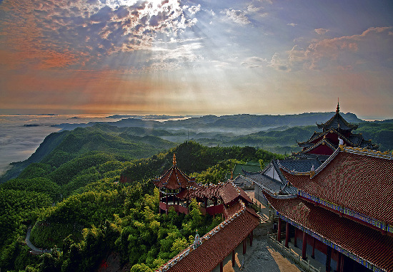 蜀南竹海龙吟寺 霞光普照万顷竹海