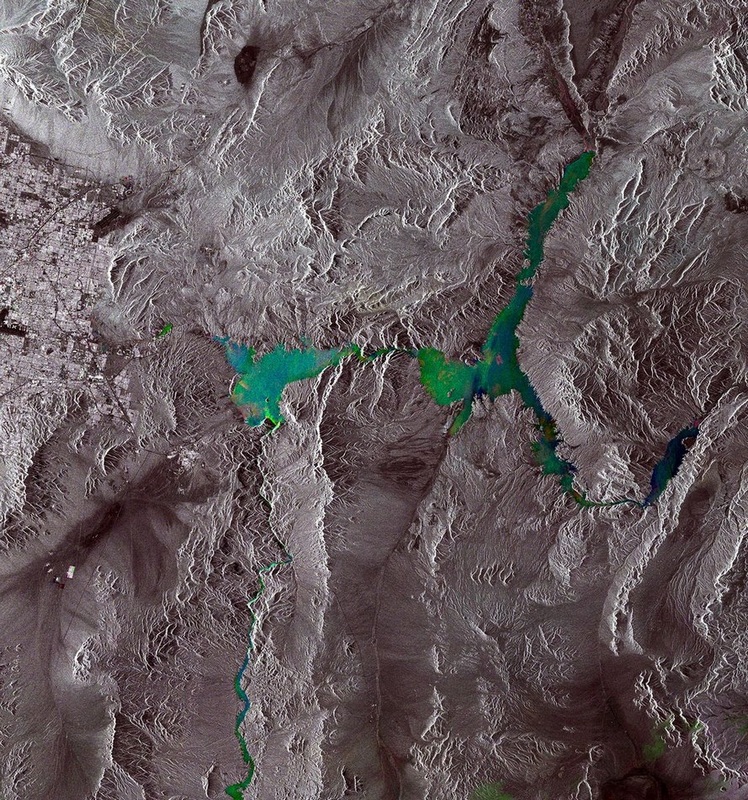 俄罗斯“大图网”发布了一组由欧洲航天局拍摄的地球照片,照片中的山河图景甚至像是玻璃上的蜡染图和霜冻景象,其上的特殊色调不禁让人再次感叹大自然惊人的美丽。