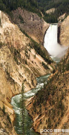黄石公园的下瀑布和大峡谷非常适合在阴天拍摄。阳光明媚的日子,相机拍摄的深色阴影常常隐藏到大峡谷的底部。