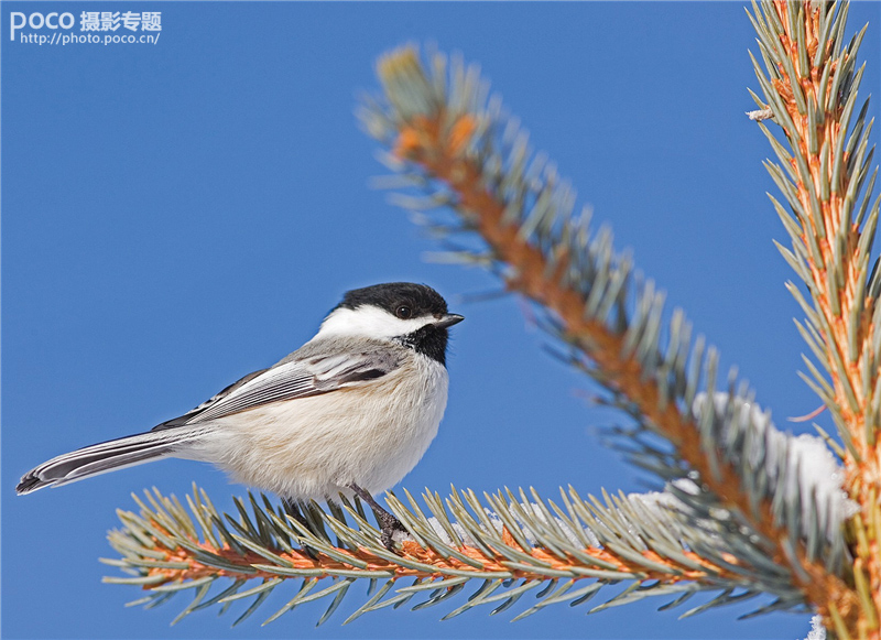 黑头山雀。它们的飞行速度很快,手持300mm 带图像防抖功能的镜头,感光度至少用 ISO200,光圈f/5.6 左右以保持高快门速度才能获得清晰图片。