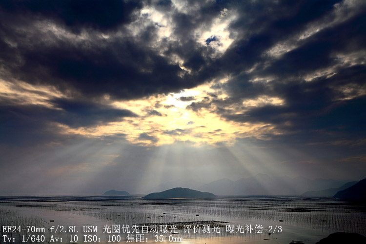 拍摄方法:  这张照片拍摄在雨后,大自然的神奇在这一刻展露无遗。我加了0.9(三档)渐变灰滤镜,适当压暗了天空,运用了三分构图法,天空占了三分之二,水面占了三分之一,找到适当的前景。因为当时条件限制,有很多石头要避开,所以用了35mm的焦段。在后期上加强了对比,突出天空的云彩变化,适当提亮了一下水面,让上下光比更加平衡。加滤镜并不是一定就能完美,只是让你的后期变得更简单。