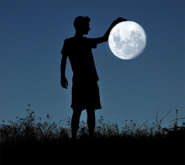 和月亮约会创意摄影作品