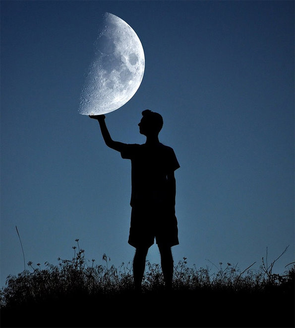 和月亮约会创意摄影作品
