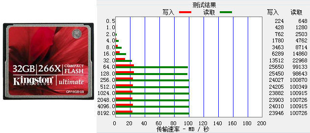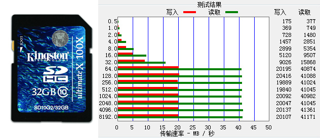 和普通的创见32GB存储卡相比,读取速度有了大幅度提高,写入速度变化不大,依然处于一个较低水平。