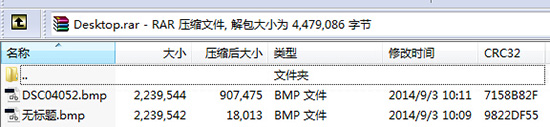 上面两张原始位图bmp文件中,“无标题.bmp”是笔者随意在“画图”中涂画几笔保存的图片,内容非常简单。而“DSC04052.bmp”是一张正常的照片,可以看到二者压缩前大小几乎一致,而压缩率是天壤之别。