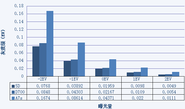 由于索尼A7s为无反相机,佳能5D没有实时取景功能故无法参与测试,在此仅提供D700的相应数据。