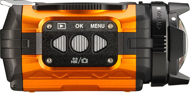 其外形也传承了WG系列户外运动理念的设计风格,由于体积小巧,配合各种配件可固定安装在手腕、头盔、滑板、车把等各类拍摄平台之上。该相机无需借助任何防水外壳即可在水下10m工作1小时,抗2m自由跌落,耐零下10℃,JIS6级防尘。