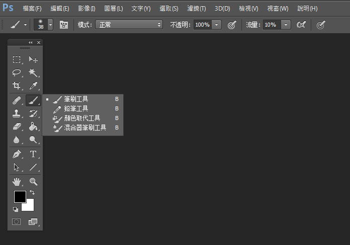 (四) 不透明度 (Opacity) vs 流量 (Flow)  刚刚提及过不透明度,如果你使用画笔工具(见下图),会发现可选择不透明和流量,使用起来貌似都是让画出来的颜色变得较浅色,但事实上,流量是有增加性的,即是例如我用了流量 10%,来回刷几下就会比起原本的 10% 更深色 (如果是 100% 则当然没有分别),而不透明度的话,则除非你分开几笔来覆盖上去,否则一笔来回刷也是不会变深色的。