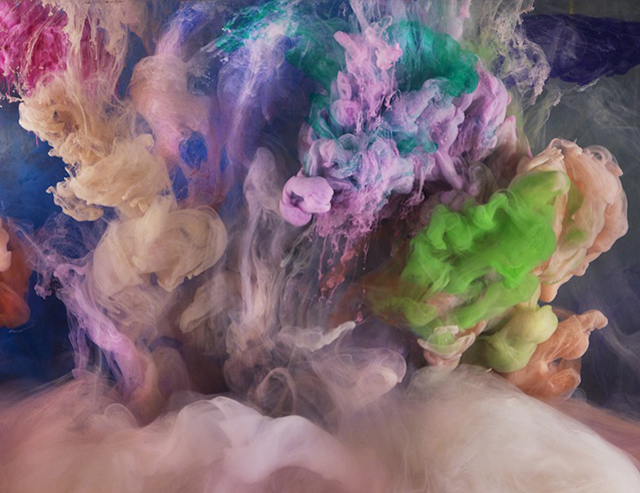 纽约艺术家Kim Keever将彩色颜料滴入水箱中,拍摄液体在水下相互作用,交织在一起的景象,创作出的作品犹如一幅幅抽象派画作。