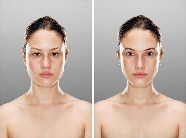 Scott Chasserot相信,人们对美貌的理解是因人而异的。为了证明这一点,他进行了一项融合了神经生理学、心理学和摄影艺术的实验,名为“原始印象”。实验中志愿者被要求以最自然的形象示人,即不加妆容修饰。整理好头发后,工作人员会从不同角度为其拍摄数十帧照片,这样就可以捕捉到人的脸型、眼睛的大小和颜色、嘴唇的轮廓以及其他生理特征。然后,这些照片将以幻灯片的形式展示给志愿者,同时相关设备会记录下他们对此的反应。最后,摄影师会得出一张照片,照片中的形象就是志愿者脑海中自己的理想外貌。