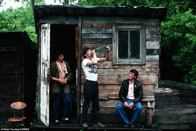 西伯利亚的的男人们在喝酒放松。
