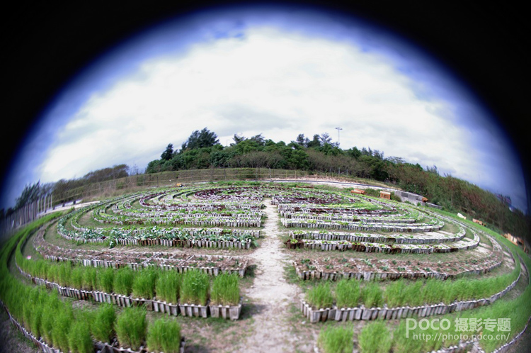 Fisheye Optic在全幅下会形成一个圆圈状,在APS-C机身上,则被裁去部份变成四个黑角。但只要将Lensbaby的角度略改,可以故意做出半圆形效果,尤如拍摄水晶球一样。