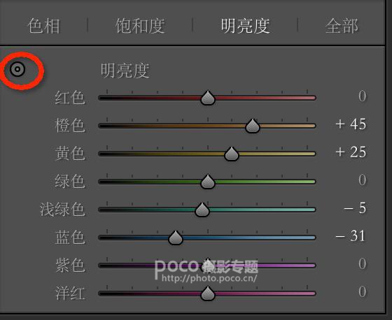 在基本栏里设置好参数后,接着调整各个颜色的明亮度。