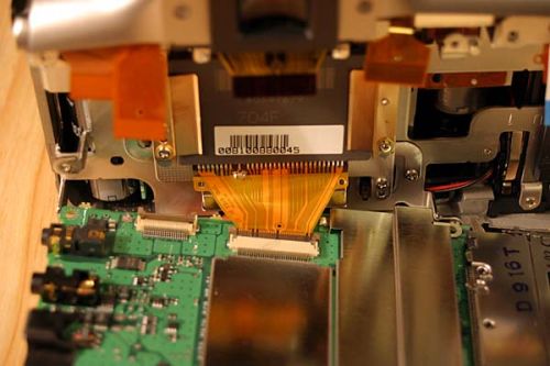 2.21轻轻抬起电路板的两个金属角,先抬起右上角,然后整个挪开。注意!这时下面仍然有一条排线。移除排线。