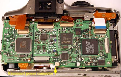 2.33插上排线之后,就可以把电路板缓慢的向上转,扣在机器上,使电路板上的螺丝口和下面的螺丝口对齐。然后安装2.22卸下来的电源线。最好是用小镊子。