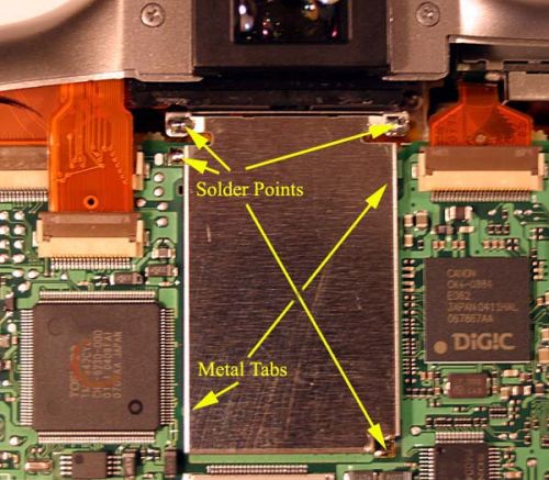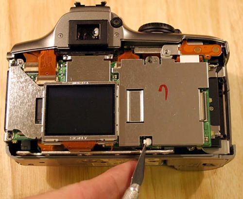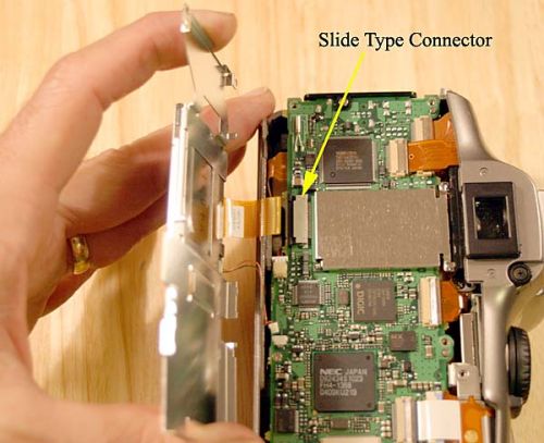 2.37使用镊子安装LCD的电源线。使劲按压直到电源接头完全咬合到位为止。LCD是索尼的产品。事实上,佳能很多数码相机的LCD都采用索尼产品。