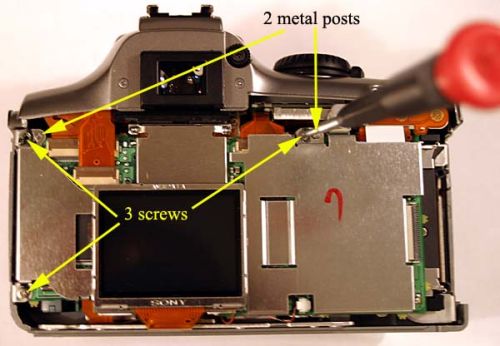 将LCD组件安装在如图的两个金属柱上,用三个螺丝钉固定。