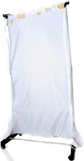 支架准备好了,那么柔光部分选用什么材料呢?这位外国大大建议大家使用白色的布,布料最好是尼龙或丝质,因为这两类布料是摄影棚的柔光箱最常选用的。为了节约成本,如果你的柔光箱属于小型的,还可以利用旧衣服代替。不过需要注意布料有没有变黄,当然还应尽量避免衣服上的花纹、装饰物等,以免影响柔光效果。