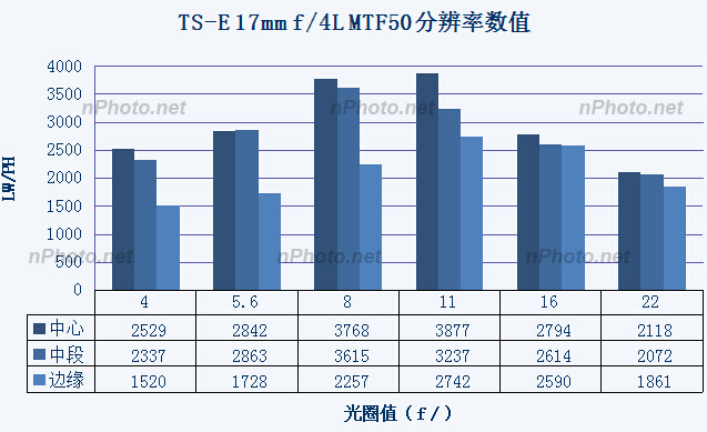 在各自最佳光圈下,全画面表现最均一、边缘画质最好的镜头是佳能17移轴。但这镜头中心分辨率相对偏低——这两个结论也印证了之前的经验推测。