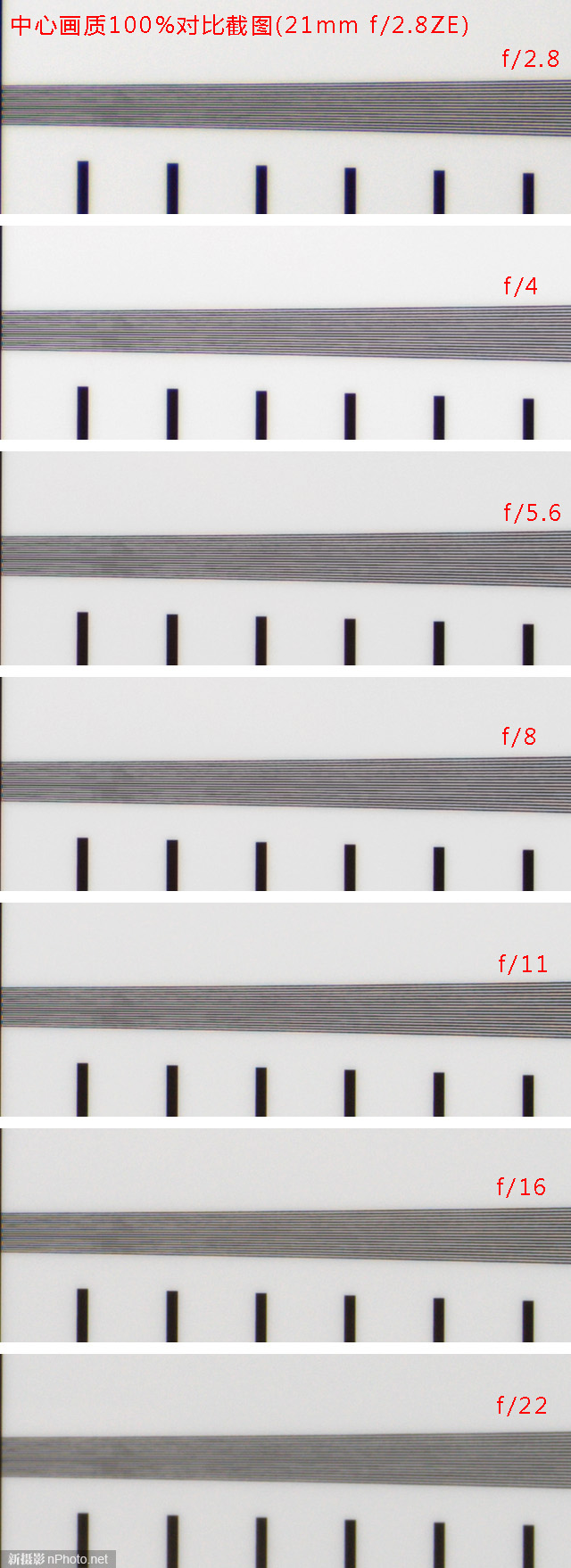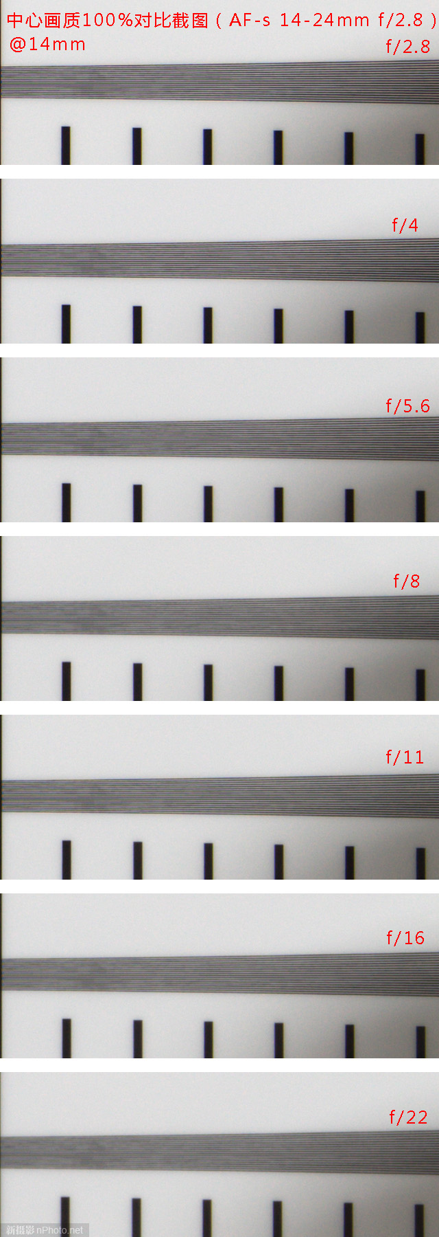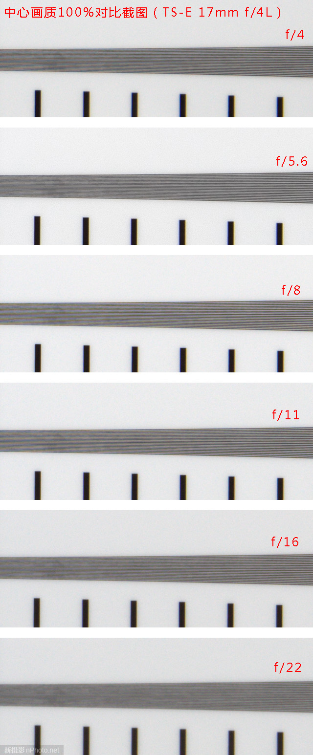 由于ISO 12233标板的中段部分标线是斜着放置的,不太方便拼图,同时参考性不大,故舍去该区域对比。只做边缘和中心100%裁切对比,裁切区域同理论分辨率测试。