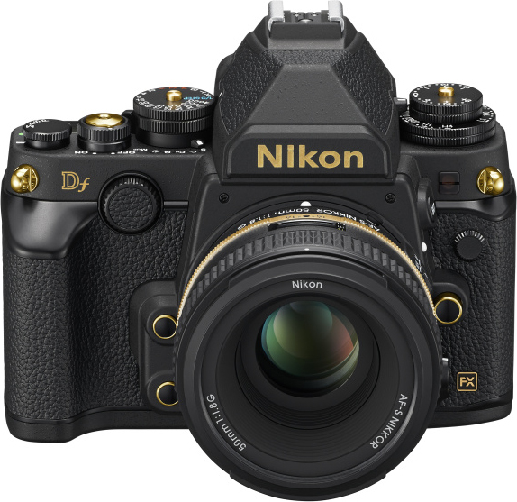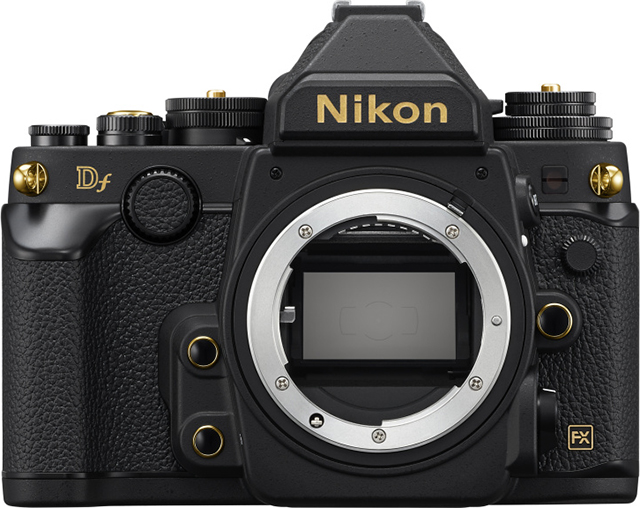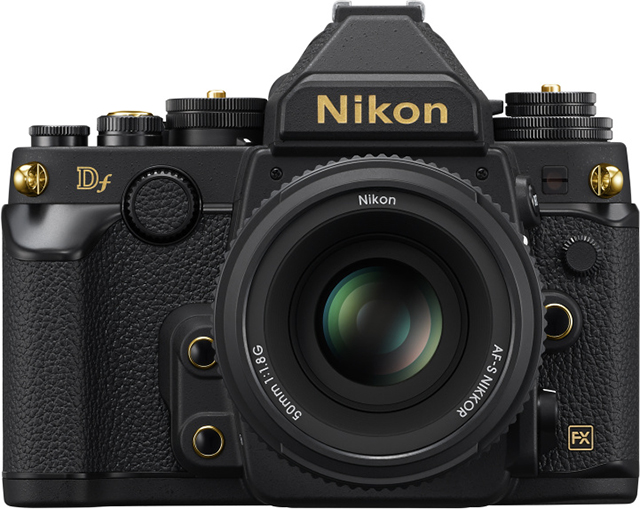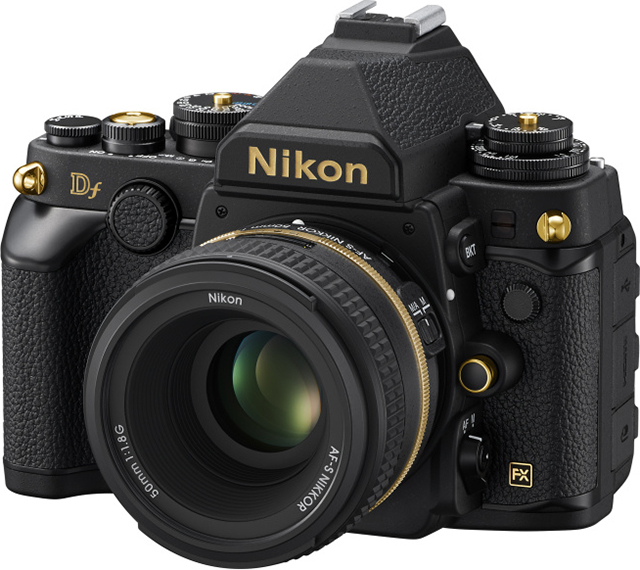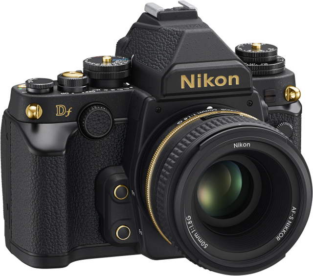 为纪念尼康Df全画幅复古单反发布一周年,尼康日本公司发布一批限量“黑金版”Df套装,其中包括600台机身,以及搭配50mm f/1.8G黄金版镜头套机1000台。单机身售价310,000日元,约合人民币16,370元,套机售价约合人民币17,426元。