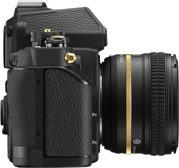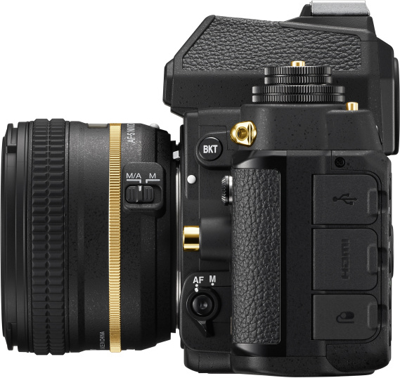 与限量版Df配套发行的特别版50mm f/1.8G镜头也拥有相同设计,金色的铝合金圆环使其与机身形成绝佳搭配。限量版套装内还将附送一枚黄金快门按钮,同时尼康也会购买该产品的用户提供专属刻印名字的服务。