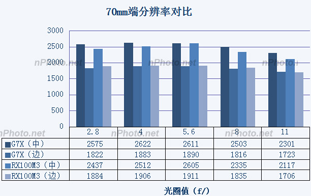 由于RX100M3没有等效100mm焦段,故长焦端选择了70mm进行比较。