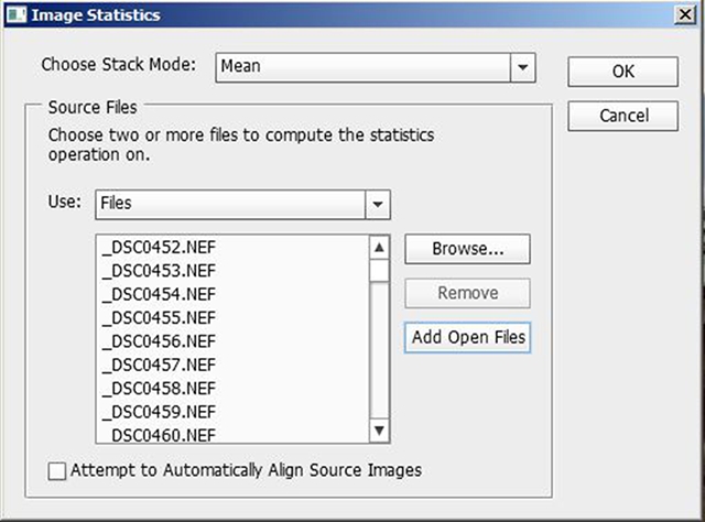 批量调节好直方图之后,就可以点击右下角的“打开照片”进入Photoshop了。取决于相机的像素以及电脑的配置,批量解几十张RAW会需要一定的时间,所有照片都在Photoshop里打开后,点击“文件”菜单,选择“脚本”,点击“统计”。(注意这个功能需要完整版/扩展版的Photoshop才有。)