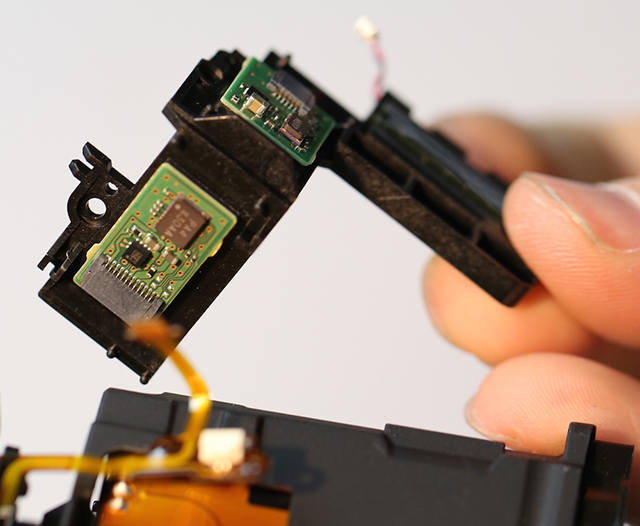 移除电池仓周围电路。图片来源:Roger Cicala/Lensrentals.com