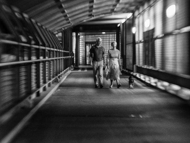 如果我的拍摄对象正面对着我, 但我又很想把当下的氛围包括那个人拍下来, 有两种方法给各位参考, 一是我会先用肉眼构图, 大概用假想的框框构好图之后快速的举起相机按下快门, 接着伸着脖子往拍摄对象的后面远方看, 彷彿你是在拍他”后面”的某个东西, 这也是用定焦镜的好处, 拍久了你大概就会知道你的镜头会拍到哪些范围, 这会让你举起相机按下快门的整个过程变得非??焖? 但请注意, 如果对方后面是一面素牆, 拜託别用这招。