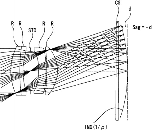 先介绍一下专利背景。专利严格使用了“non-planar(非平面)”一词,说明曲面传感器的曲率其实有限,因此不能完全抵消镜头像场弯曲问题。而根据现已掌握的消息,No.20150077619号专利主要探索曲面传感器专用镜头的小型化问题,并在有限的尺寸内提升像场弯曲补偿效果。