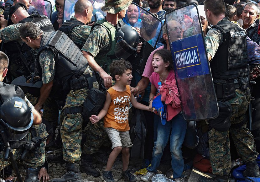 作品:Macedonian border police clash with refugees