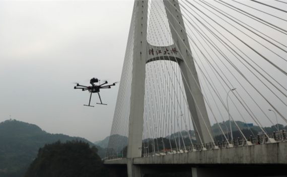 当然这个摄像头也不一定只安装在机腹下边,也可以顶在头顶上检查桥梁的底部。这样的无人机可以有效发现桥梁的安全隐患。
