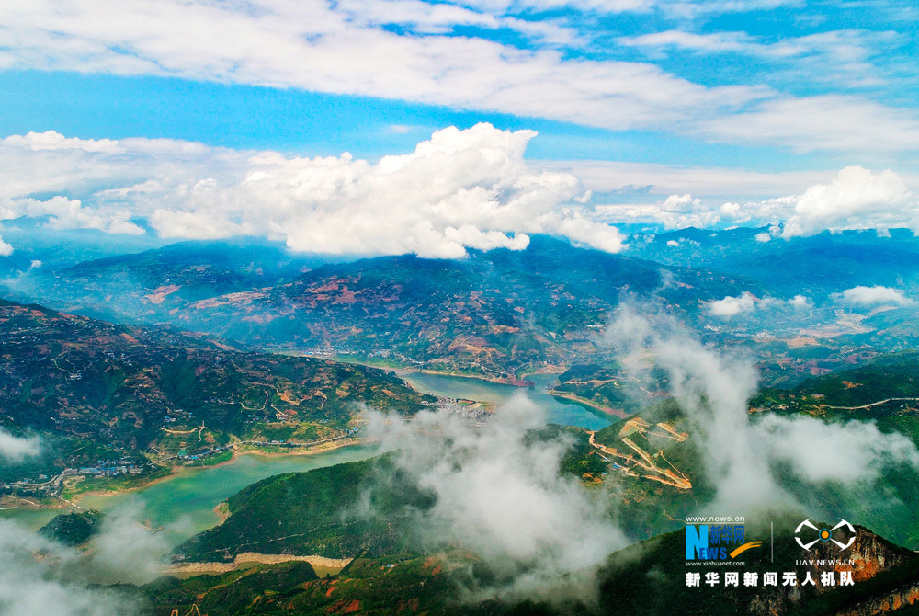 图为无人机航拍雨后的瞿塘峡,云卷云舒。新华网发 伍北海 摄