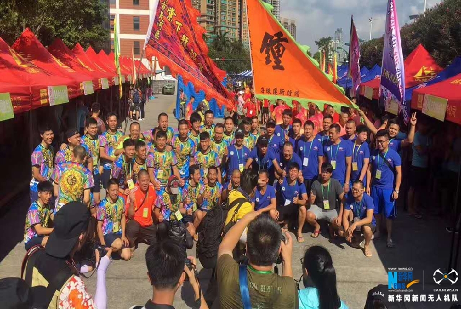 龙舟比赛前,运动员们聚集合影。新华网发 沈敦文摄