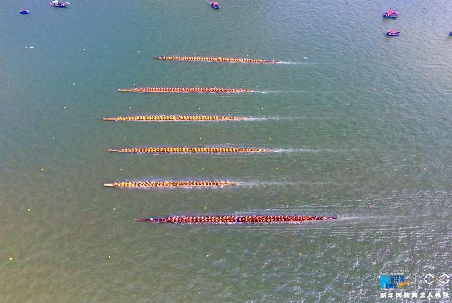航拍广州国际龙舟邀请赛 约5000运动员竞渡珠江