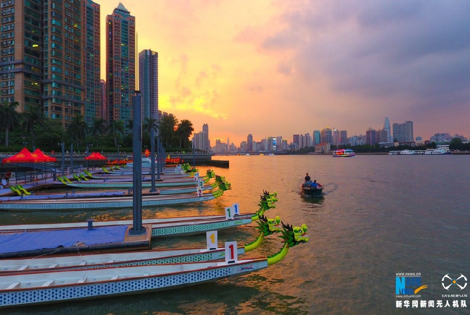 航拍广州国际龙舟邀请赛 约5000运动员竞渡珠江