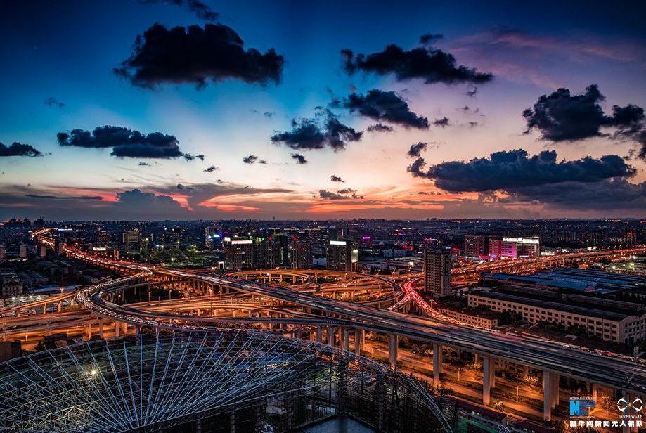图为傍晚时刻的上海立交桥。新华网发 田横 摄