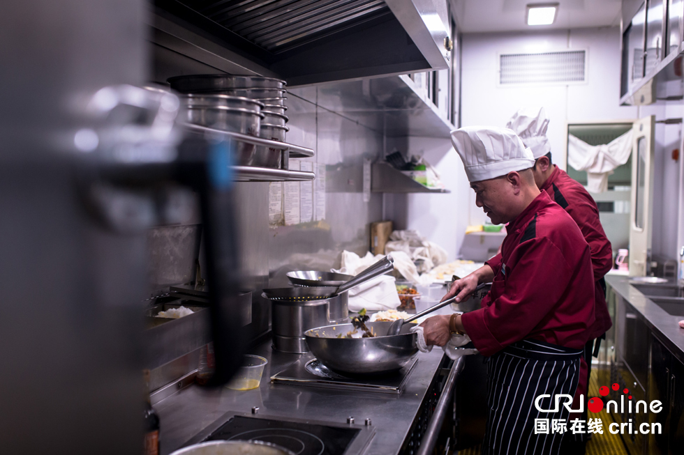 由于列车由电力机车牵引,一切工作都要从机车给车厢供电开始,对于用电烹饪的餐车来说,来电就是命令。晚16点30分,厨房里响起了来电信号,白振庆师傅和他的老搭档们开始忙碌起来,首先要烹制出一批盒饭,满足更多旅客的需求。