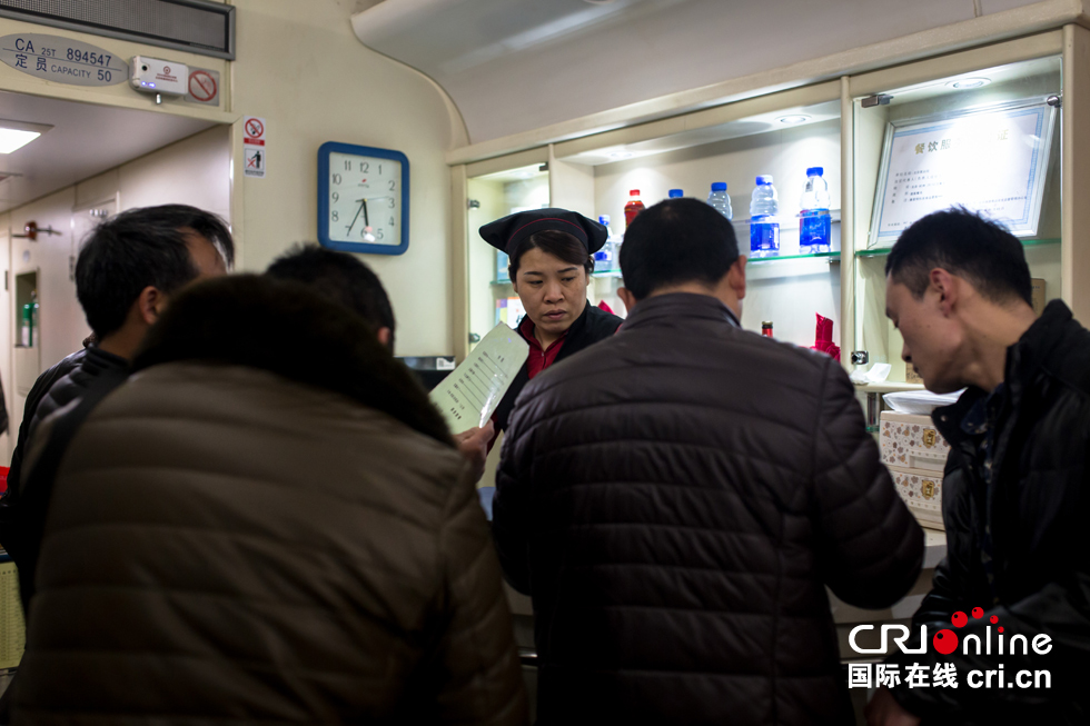 等列车行驶一段时间后,陆续有旅客来到餐车点餐。
