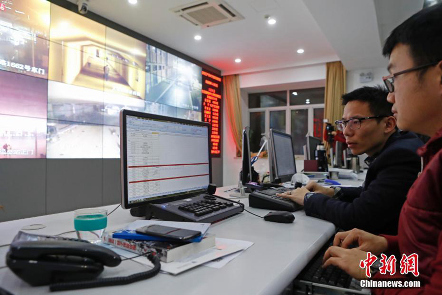 在上海静安区的网格化管理中心,工作人员对重要场所进行24小时监控。中新社记者 殷立勤 摄