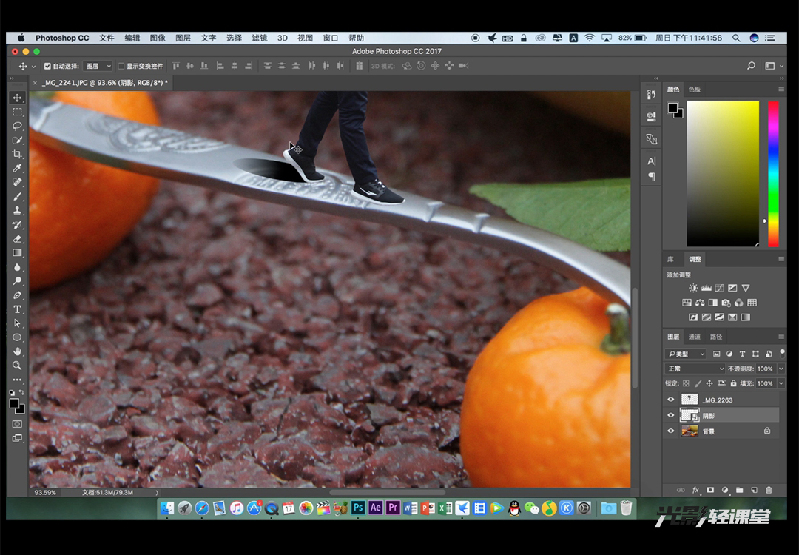 第五步制作人物阴影,新建PS透明文档画一个黑色椭圆保存为PNG格式,再拖入人物下方采用滤镜—模糊—高斯模糊,数值30左右,将阴影调整至适当位置,用降低硬度的橡皮擦工具对阴影进行微调擦除直至满意。(新华网发彭勇摄)