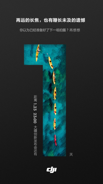 来自大疆官网的公告,大疆创新将于1月23日在纽约举行主题为“Adventure Unfolds”的活动。据了解,大疆目前跟“Adventure”挂的上钩的户外便携无人机是Mavic Pro,那么很有可能,大疆会在23日23:00带来新的Mavic 系列的无人机。