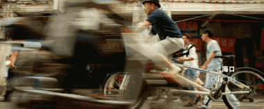 侧面跟拍人物追逐的场面时,人物在画面中的位置不变,画面中前后景快速变化,能够制造紧张的情绪。