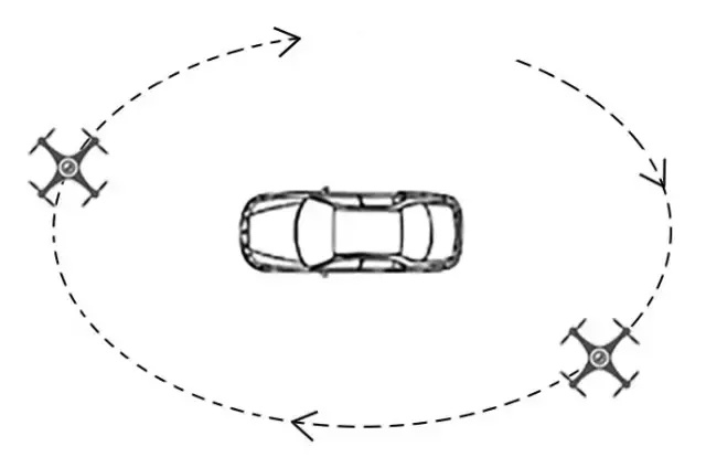 航拍环绕镜头又称为刷锅,是指拍摄的主体不变,无人机环绕主体做圆周运动,云台始终跟随主体,并通常将主体置于画面中央拍摄的镜头,如下图所示。