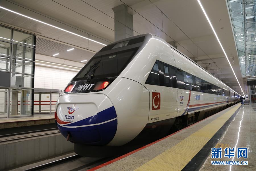 2018年3月22日,在土耳其安卡拉火车站,一列火车准备开往伊斯坦布尔。由中国企业参与建设的连接土耳其首都安卡拉和土最大城市伊斯坦布尔的高速铁路二期工程2014年7月底顺利通车。该线路的通车使安卡拉和伊斯坦布尔两个城市间铁路运行时间由9小时缩短至3个半小时。新华社记者秦彦洋摄
